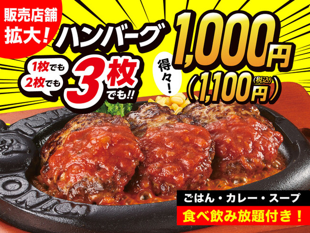株式会社トマトアンドアソシエイツ(本社:兵庫県西宮市、代表取締役社長:小林 大二)が運営する、アメリカンダイニング「トマト&オニオン」では、2023年5月18日(木)よりハンバーグを3枚まで同じ価格でお召し上がりいただける『得々ハンバーグランチ』を、ご好評につき販売店舗を拡大いたします。