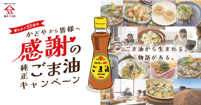 1858年に小豆島で創業し、160年以上にわたって“ごま”を通じてお客様に健康と笑顔をお届けするかどや製油株式会社(所在地:東京都品川区、代表取締役社長:久米敦司)は、5月15日(月)より、「かどやの純正ごま油」の発売55周年を記念したキャンペーンを実施します。