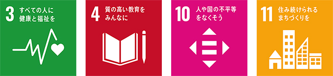 【目標11】健康的な体づくりができる交流の場を目指します。世代に関係なく新しい出会い・繋がりが生まれ、地域の憩いの場として地域活性化に貢献します。