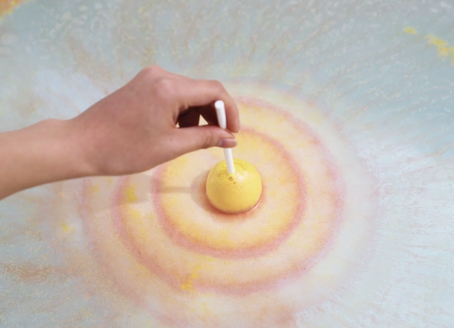 バスボムを動かす速さを変えてみたり、お風呂に入れる角度を変えてみると、いろいろな模様を作って遊ぶことができます♪