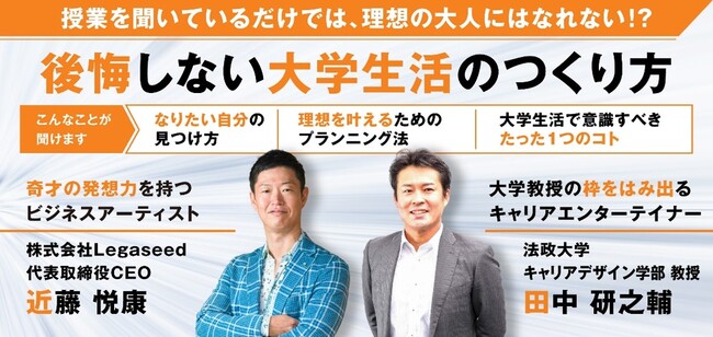 授業には、株式会社Legaseedの代表取締役 近藤悦康が登壇しました。4年間という限られた大学生生活のなかで、社会に出る準備として何を経験するべきか、約1時間をかけて講演をしました。