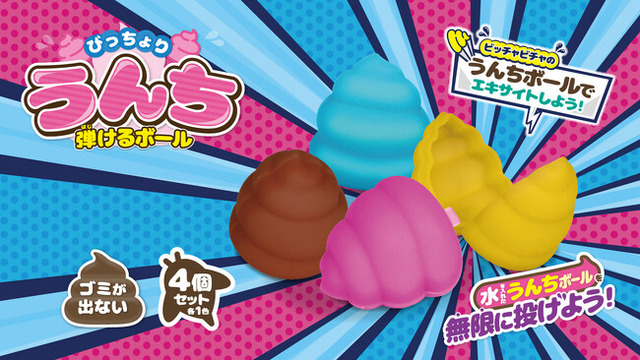 特徴:大人気「うんち尻(しり)~ず」の第四弾!割れない水風船がうんち型になって登場。シリコン素材で柔らかく、繰り返し使えるのでエコ&当たっても痛くない。カラフルな4色セット。憧れの「うんち投げ合戦」でうんちを投げ合おう!