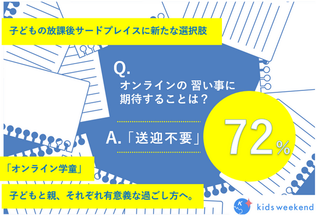 子ども向け「教育×オンライン」の分野で日本最大級のプラットフォームを展開するキッズウィークエンド株式会社(本社:東京都中央区、代表取締役兼CEO:三浦里江、以下、キッズウィークエンド)では、多忙な働く世帯をサポートする「キッズウィークエンドスクール」を運営しております。お子さまが放課後時間を有意義に過ごすことができ、保護者も負担を減らすことのできるサービスです。このたび、当社サービスをご利用の保護者の方々を対象に「オンライン学童」における調査を実施いたしました。現状やニーズを明らかにし、オフラインで満たすことの難しいニーズに対応する本サービスの可能性についてレポートいたします。