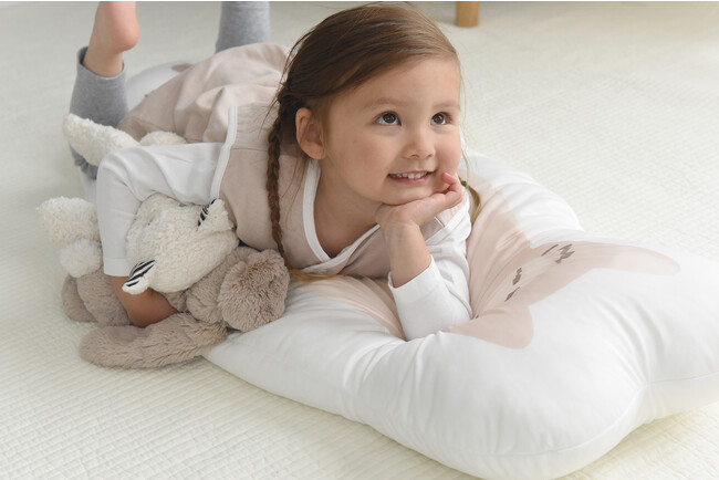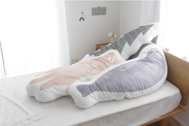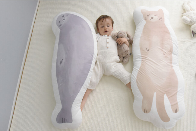 また、キッズ向けの「接触冷感抱き枕」は、無地のものや、動物・キャラクターモチーフの商品が主流で、「インテリアに馴染みにくい」。そんなママの声を反映し、かわいらしいモチーフを活かしながらも、優しくニュアンスのあるカラーリングに仕上げました。子ども部屋はもちろん、リビングにも馴染むデザインがポイントです。