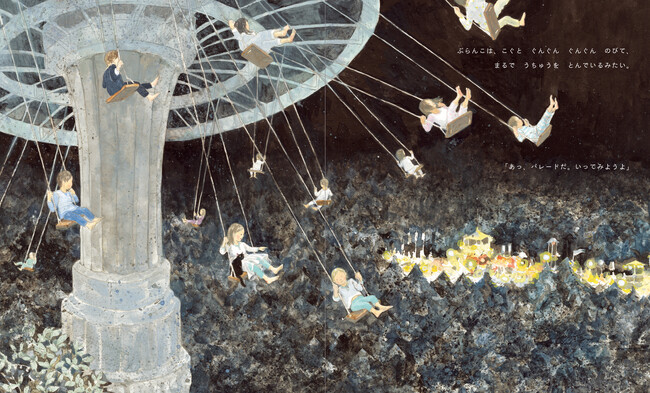 るなちゃんは寝る前におかあさんに本を読んでもらうのが大好き。でも、今夜はおかあさんがなかなか来てくれません。すると、窓の外に男の子が現れて、つきのこうえんに遊びに行かない? と誘います。るなちゃんは、ふわんと空に浮かびます。そこは、パジャマ姿の子どもたちが集まるふしぎなこうえんでした。