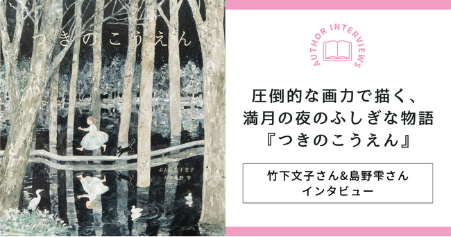 『つきのこうえん』で、満月の夜に起こるふしぎな物語を手がけられた竹下文子さんと、竹下さんの物語を圧倒的な画力で表現された島野雫さんに物語が生まれた背景や画法についてお話を伺いました。ぜひお確かめください。