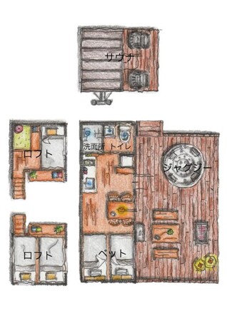 薪サウナまたは電気サウナ・ジャグジー完備しております。また#01ではBBQも楽しめます。 家族や、友人とゆっくりリラックスしてサウナやジャグジーをご利用いただけます。 屋外で整えるようにウッドデッキスペースを広くとっております。 ハンギングチェアもあります。 内装は建具屋こだわりの木の素材を生かしたデザインになっていて木の呼吸を感じられるかとおもいます。
