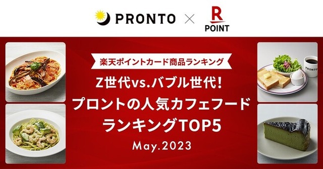 株式会社プロントコーポレーション以下「プロント」と楽天ペイメント株式会社以下「楽天ペイメント」は共同で、「楽天ポイントカード商品ランキング」において「Z世代 vs バブル世代!プロントの人気カフェフードランキンTOP5」を発表しました。