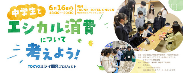 公益社団法人東京青年会議所は、2023年6月16日(金)18時30分からTRUNK HOTEL ONDEN(東京都渋谷区神宮前5丁目31)にて「中学生とエシカル消費について考えよう!~TOKYOミライ開発PJ~」を開催いたします。