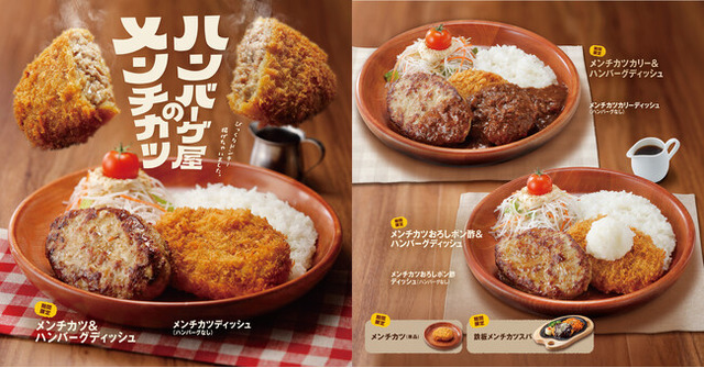 昨年好評だったいつものハンバーグパティに生パン粉の衣をまとわせ、サクサクっとした食感とじゅわっと溢れる肉汁を愉しめるメンチカツディッシュ3種に加え、今年はびっくりドンキーのメンチカツとお馴染みのハンバーグを「どちらも一度に楽しんでほしい」という思いを込めて、ハンバーグディッシュにメンチカツを盛り合わせた贅沢なディッシュメニューが各種新たなラインナップとして登場。