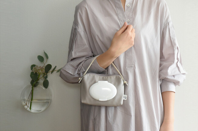 ちょっとしたギフト感覚でも選びたくなる、「フェイクレザー おしりふきポーチ」です。