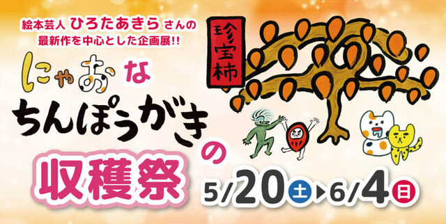 「MOE絵本屋さん大賞新人賞」受賞のひろたさん著の新作「ちんぽうがき」と「にゃおにゃおにゃお」がテーマの企画展を開催。親子で絵本の世界に浸ってみませんか?