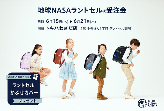 オリジナルランドセル「地球NASAランドセル(R)」の企画・販売を行う池田地球株式会社(本店:東京都港区:代表取締役 村尾光一)は、6/15(木)~6/21(水)の期間、トキハわさだ店2階中央通り1丁目ランドセル売場にて「地球NASAランドセル(R)受注会」を開催いたします。