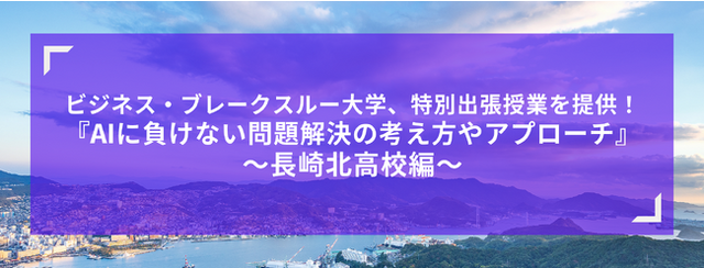 生涯学習の推進とあらゆる年齢層への教育提供を目指す株式会社ビジネス・ブレークスルー(所在地:東京都千代田区、代表取締役:柴田巌、以下BBT)は、長崎北高校においてビジネス・ブレークスルー大学(以下、BBT大学)の冨岡武准教授による「ChatGPTを凌駕する問題解決アプローチ」の特別授業を開催することを決定しました。