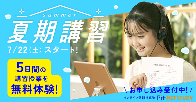 全国に学習塾を展開しているCKCネットワーク株式会社(代表:山崎朋宏、本社:愛知県名古屋市名東区)が運営する、オンライン個別指導塾Fit NET STUDY(フィットネットスタディ)では、7/22(土)より夏期講習がスタートします。講習のお申し込みは、6/1(木)から可能です。(※満席になり次第、申し込みを締め切る場合があります。)