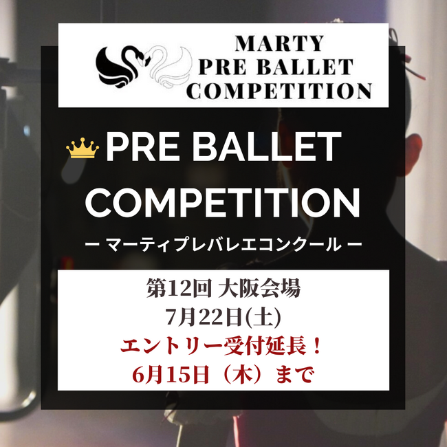 お問い合わせ多数につき、マーティプレバレエコンクールVol.12 in大阪 のエントリー受付が6月15日(土)まで延長が決定いたしました!