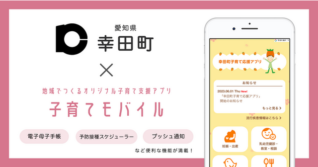 自治体向けサービスを開発する株式会社ミラボ(本社:東京都千代田区、代表取締役:谷川一也、以下「ミラボ」)の子育て支援アプリ「子育てモバイル」が、愛知県 幸田町に導入され、「幸田町子育て応援アプリ」として6月1日より提供を開始します。