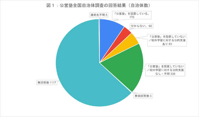 有効な回答があった653自治体のうち、170の自治体が「「公営塾」を設置している」と回答しました。
