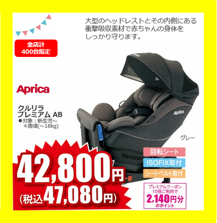 アカチャンホンポが厳選したイチオシ商品のベビーカーやチャイルドシート、ベビーふとんや育児雑貨、衣料品など、人気のアイテムが“目玉プライス”に。