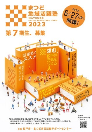 まつど地域活躍塾(主催:松戸市・まつど市民活動サポートセンター)とは、松戸をより暮らしやすく、魅力的な街にするため、地域で様々な活動に取り組む方を応援するための塾です。