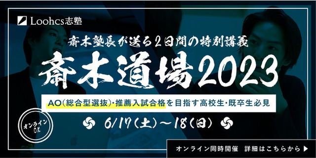 総合型選抜の合格のためには、現代社会を理解することが必要不可欠です。そのため「斎木道場」では、「社会に対する問題意識の本気度」を飛躍的に引き上げるトレーニングを3日間で集中して取り組みます。総合型選抜合格のために出願書類をさらにレベルアップするための「重要ポイント・必須知識のインプット」と、小論文・ディスカッションによる集中的な「2次試験対策」を同時に行える、「一石二鳥」の講座になっています。