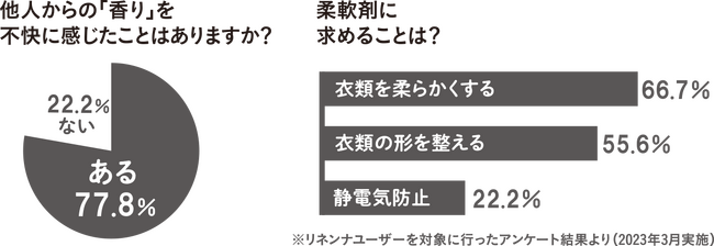 リネンナのユーザーアンケート結果にもあるように、近年社会問題にもなりつつある“香り”に対する多種多様な価値観をないがしろにせず、着る人も周囲の人も心地よくあるために、着心地の良さに特化しました。