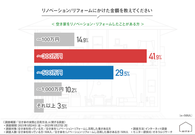 では、空き家のリノベーションやリフォームにはどのくらいの費用がかかったのでしょうか?