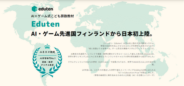 AI教育の先進国フィンランドで算数・数学分野のデジタルツールとして最も人気のあるEdutenは、