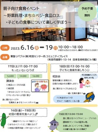 これらの結果を踏まえ、このたび、FC町田ゼルビアや東急リバブル(株)などの協力のもと、野菜料理・まち☆べジ・食品ロス・子どもの食事について、気軽に楽しく学ぶことができるイベントを実施します。