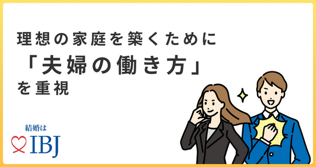 今回すべての調査で、“働き方”を重視している結果となり、年収や外見などの表面的な条件だけではなく、「結婚後の生活」を意識した“具体的な要素”を婚活の軸として据えているのかもしれません。共働き世帯は年々増加し平成9年以降は「共働き世帯数」が「男性雇用者と無業の妻から成る世帯数」を上回り、令和3年時点では共働き世帯が7割を超えました。*²共働きが一般化している中で、ワークライフバランスを重視した働き方をお互いに話し合うことが新婚生活の充実度につながるのではないでしょうか。引き続きIBJでは、ご縁のある皆様の幸せを願い、一組でも多くの結婚を望む方のお手伝いを二人三脚で行って参ります。