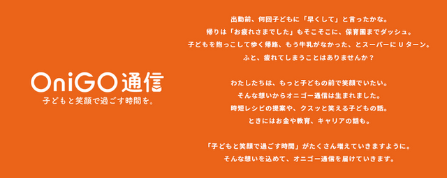 OniGO通信は、ますます忙しくなる現代において、「親であり、ビジネスパーソンでもある、働くわたしたち」が、「子どもと笑顔で過ごす時間を増やしていきたい」をコンセプトに、時短レシピや子育て情報、お金や教育、キャリアといった有益な情報を発信します。