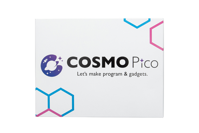 内容:COSMO-Pico、COSMO-Editor(アドバンスプラン 1ヵ月分)、拡張ボード×4、ディスプレイ、サーボモーター、超音波センサー、湿温度センサー、ケーブル類、電池ボックス。
