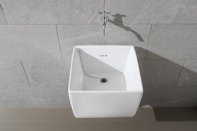 住宅設備機器と建築資材のインターネット販売を行う株式会社サンワカンパニー(所在地:大阪市北区茶屋町19-19代表取締役社長:山根太郎以下、当社)は、何でも洗える深型のスロップシンク《アクレッタ》を6月12日に発売いたしました。汚れてしまった服や靴・アウトドアグッズ・園芸用品等を洗う際に便利な大容量のシンクです。四方の縁を極限まで薄くすることで、大容量でありながら圧迫感の無いデザインに仕上げました。壁面への固定金具が見えない仕様のため、浮いているかのような軽やかな印象を与えます。