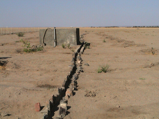 農業土木学研究室では,東アフリカのジブチ共和国における沙漠緑化の研究を,30年以上にわたって続けています.下記写真は,沙漠緑化前と,緑化後の様子です.自然環境の修復には,長い年月が必要です.限られた水資源を効果的に集めて有効に利用するための研究をコツコツと続けることにより,沙漠に緑が増えつつあります.私たちの緑化は,生活の糧となる作物も対象としているため,現地の人々の生活にも役立っています.