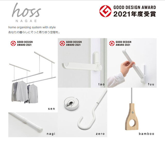 hoss NAGAEがラインナップする室内物干しのアイテムは限られた室内空間において、物干しスペースを効果的に確保しつつ生活環境を圧迫しないことを目標に開発されました。