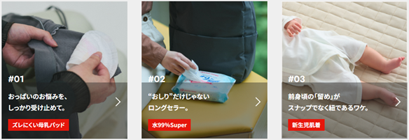 出産も子育ても大変なことはたくさんあるけれど、赤ちゃんのいる暮らしの中で、楽しさや驚きや感動に満ちた時間を過ごしてほしい。だからこそ、大変さを解消するために“モノ”にも“コト”にも想いやこだわりを持って開発・提供をしています。
