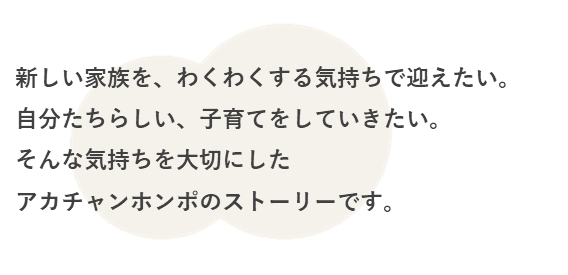 そんな想いから“モノ”と“コト”のものがたりを綴った『akachan honpo +Stories』が誕生しました。