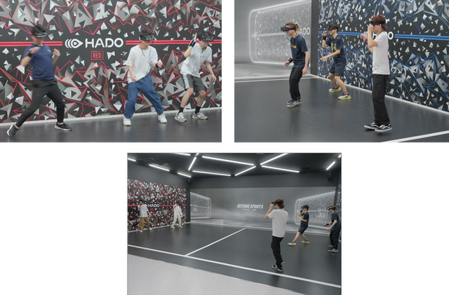 「HADO」は株式会社meleap(本社・東京都港区)が開発したARスポーツで、ヘッドマウントディスプレイの画像を見ながら、腕に着けた端末(アームセンサー)を動かし、エナジーボールと呼ぶ仮想の弾を撃ち合って対戦するゲームです。3対3の試合が可能で、相手の弾を避ける俊敏性や3人の役割分担などの戦略性を競います。現在、HADOを体験できる専門施設「HADO ARENA」は全国に8か所ありますが、近畿地方ではエコール・いずみの施設が唯一です。