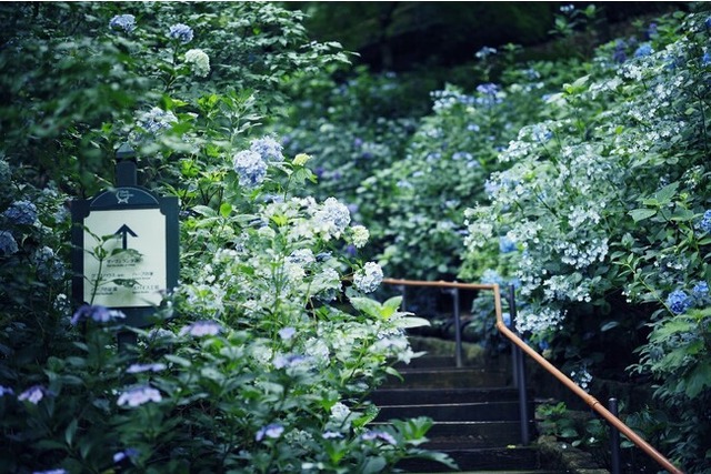 神戸布引ハーブ園の癒しの散歩道。木漏れ日を浴びながら、アジサイ散策をお楽しみください。