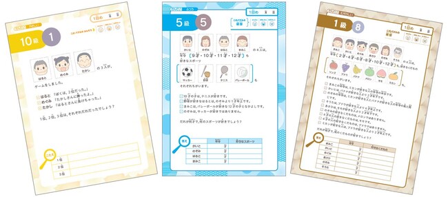 今回のリニューアルでは、より無理なくレベルアップできるよう、パズルの内容や難易度を調整いたしました。「やさしい」では、なるべくやさしい言葉を用いた簡潔な文章とし、少ない条件から考えられる構成としています。そして、「ふつう」、「むずかしい」とレベルが上がるにつれ、条件が増えて難易度も上がるしくみです。
