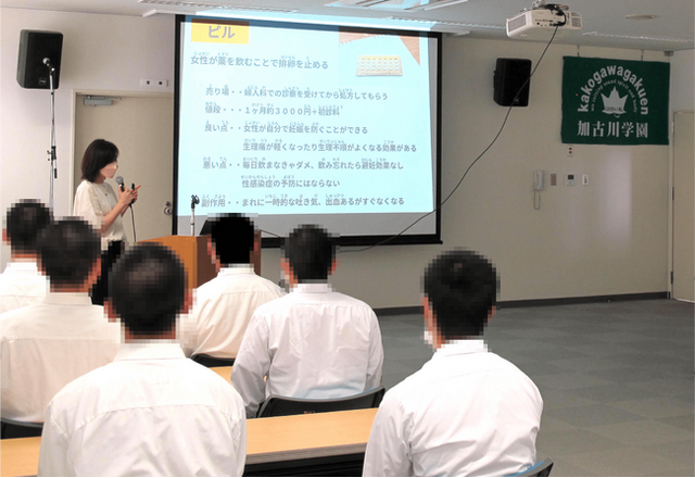 妊娠と避妊のテーマでは、セックスの先に起こる「妊娠」、「産む・産まないの選択」、そしてそれぞれの選択にどんなことが必要になるかを伝え、妊娠を希望しない場合には避妊が必須であること・具体的な避妊の方法などについて話しました。講師は「セックスは2人ですること。でもその結果の妊娠は女性の身体だけに起こります。希望する時に妊娠してほしいからこそ、希望しない時は正しくきちんと避妊することが必須です」とコメントしました。