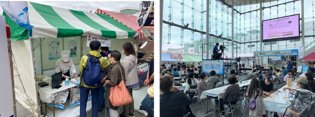 福丼県ブースでの「アカモク試食会」では、両日100食限定で『アカモク』を配布し、30分足らずで全てなくなり、来場者が『アカモク』に少しでも興味を持っていることが分かりました。「アカモクセミナー」では、『アカモク』の有効活用を目的に、健康効果の解明、新たなメニューや料理、新製品の開発、食育などを進められている福井県立大学看護福祉学部 大学院健康生活科学研究科 村上茂教授に講演していただき、『アカモク』の効能などを発表していただきました。来場者からは、『アカモク』が会場で買えないのかと問い合わせがくるほど、より多くの人に今回のプロジェクトや、海洋ごみ問題について認知拡大のきっかけをつくることができました。