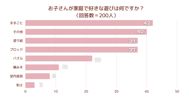 「お子さん(幼児)が家庭で好きな遊びはなに?」とアンケート調査した結果、1位は『ままごと』でした。