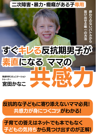 はじめまして。発達科学コミュニケーショントレーナー宮田かなこです。暴力や癇癪に怯えるママは卒業できる、二次障害と関わり過ぎない子育ての専門家として活動しています。この度、反抗的なすぐキレる子どもに一番必要なのは周囲の養育者の共感力であることと気づいて欲しく、「\二次障害・暴力・癇癪がある子専用/すぐキレる反抗期男子が素直になる ママの共感力」無料電子書籍のダウンロードを開始しました。