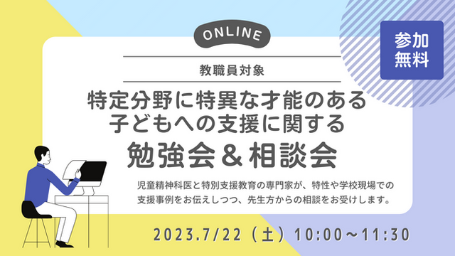 7/21(土)10時より、初の土曜日開催となる「教職員向け勉強会&相談会」を開催します。