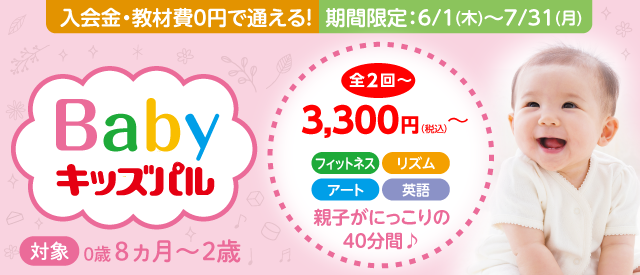 「Baby キッズパル」は入会金・教材費0円、参加費のみで受講可能です。