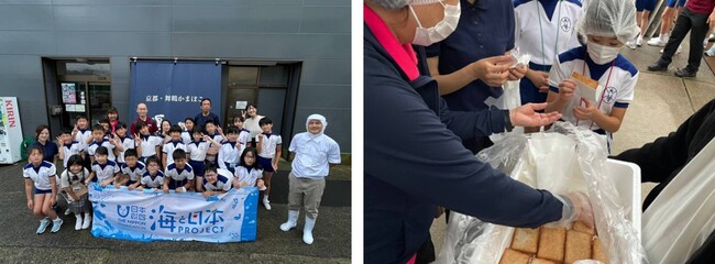 地元の魚を食べることで巡り巡って海の環境を守ることに繋がることを学び、最後にはできたての「舞鶴かまぼこ」てんぷら(ひらてん)を全員で試食しおいしさを体感しました。家に帰ってからもこのおいしさや、地元の魚を食べることで海の環境を守ることに繋がることを家族や友達に伝え、「自分たちにできることをしよう」と話していた様子でした。この後、「舞鶴かまぼこ」を製造販売する(株)嶋七とのオリジナル商品を販売予定で、オリジナルパッケージにはイベントを通して子どもたちが学び感じたことの一言メッセージを掲載予定です。