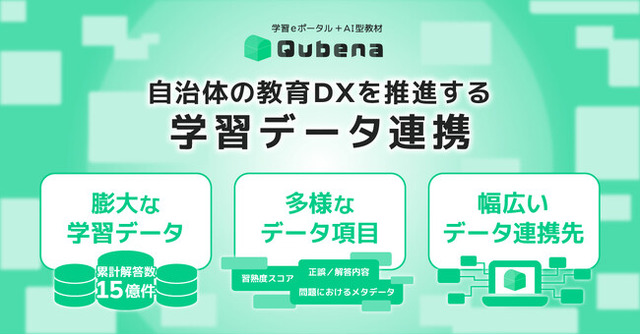 当社が提供するQubenaは先月累計解答数15億件を突破するなど、各自治体において高い活用率となっており、それによって日々の学習活動で蓄積される膨大な学習データを、詳細で多様なデータ項目で提供することで、さらなる「個別最適な学び」の実現を支援してまいります。