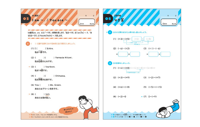 本書の最後には「復習テスト」付きで、中学1年で学習する内容の総復習もできます。