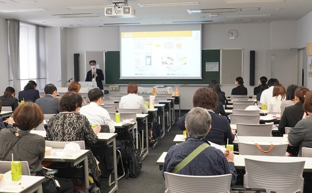 ケンコーマヨネーズ株式会社(東京本社:東京都杉並区 代表取締役社長:炭井孝志)は、5月27日(土)に東京家政大学 板橋キャンパスで開催された、一般財団法人 日本家政学会主催の「日本家政学会 第75回大会 ランチョンセミナー」にて講演を行いました。原材料や素材の研究を行っている当社商品開発本部員が「マヨネーズの不思議」についてお話しました。